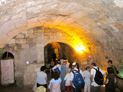 | Vault under the Western Wall where remains of Hezekiah's wall is located. |
